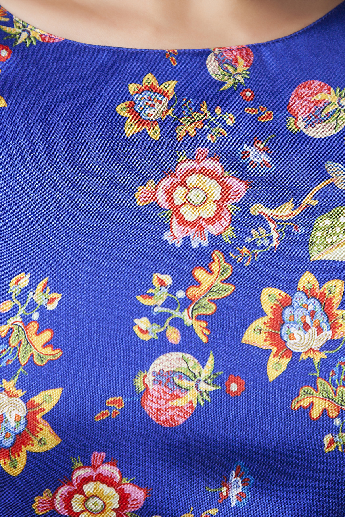 Printed taffeta silk boostier and skirt in beautiful deep blue color and all over multicolor  floral print