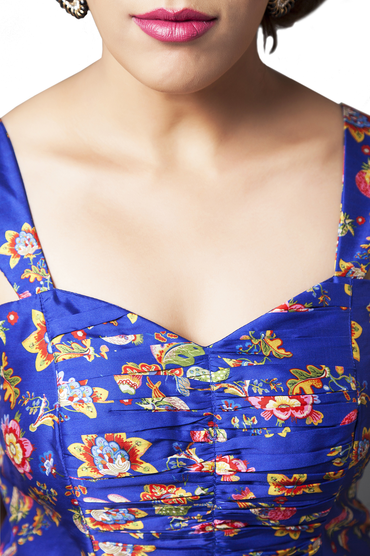 Blue printed boostier skirt 5 out of 5 based on 1 customer rating Product Details Printed taffeta silk boostier and skirt in beautiful deep blue color and all over multicolor floral print