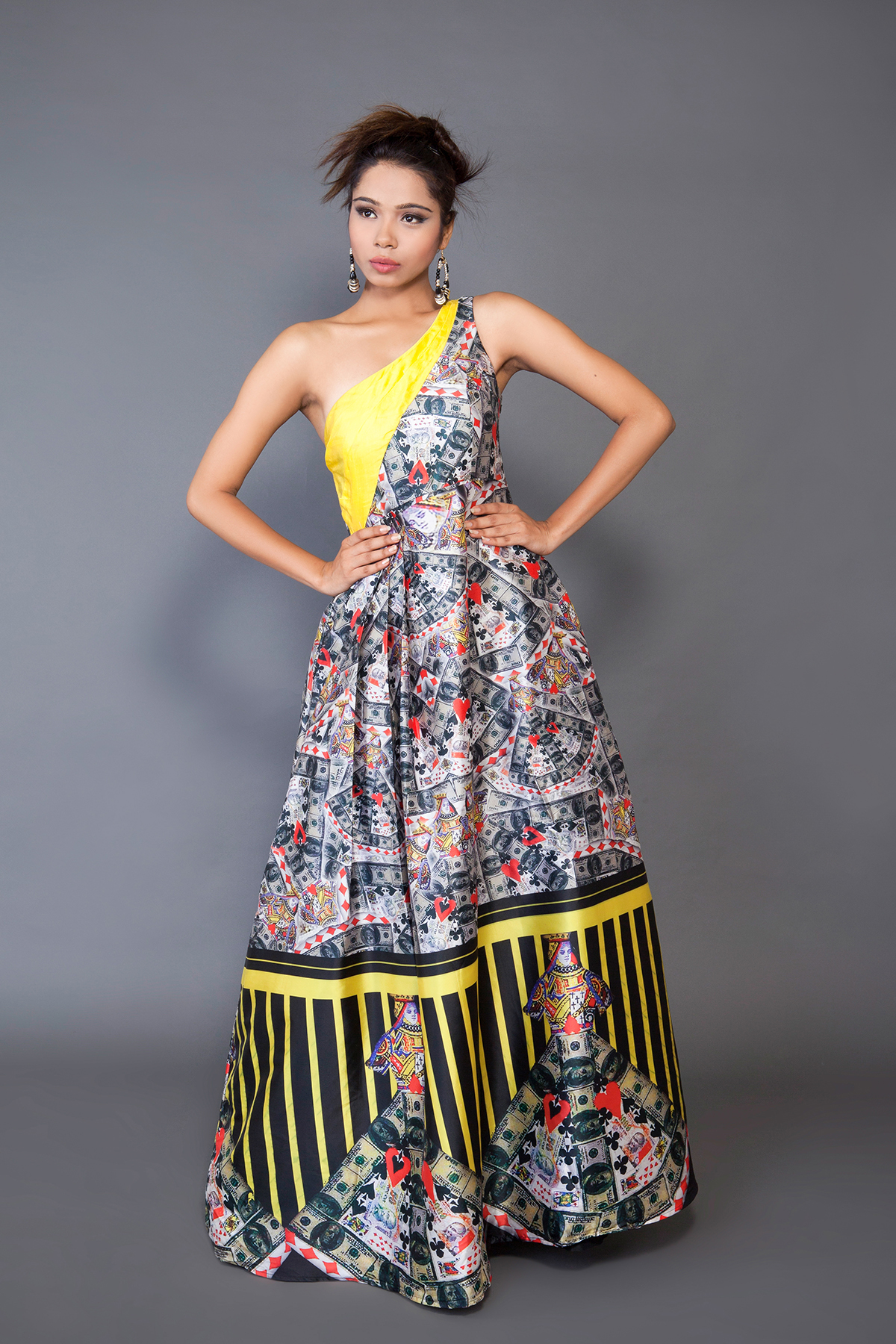 Printed one shoulder gown 5 out of 5 based on 1 customer rating Product Details Taffeta one shoulder gown with contemporary pattern in vibrant colours
